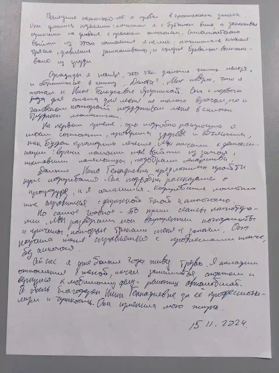 С помощью кодирования по методу Довженко мы помогаем пациентам избавиться от алкоголизма без использования препаратов, что делает этот метод безопасным и хорошо переносимым. Лечение направлено не только на устранение физической зависимости, но и на работу с психологическими аспектами, что значительно увеличивает шансы на успешное выздоровление. В нашей клинике мы заботимся о каждом пациенте, предоставляя ему полную поддержку на всех этапах лечения. Мы уверены, что с нашей помощью можно преодолеть даже самые сложные формы алкогольной зависимости и вернуть пациенту нормальную жизнь.